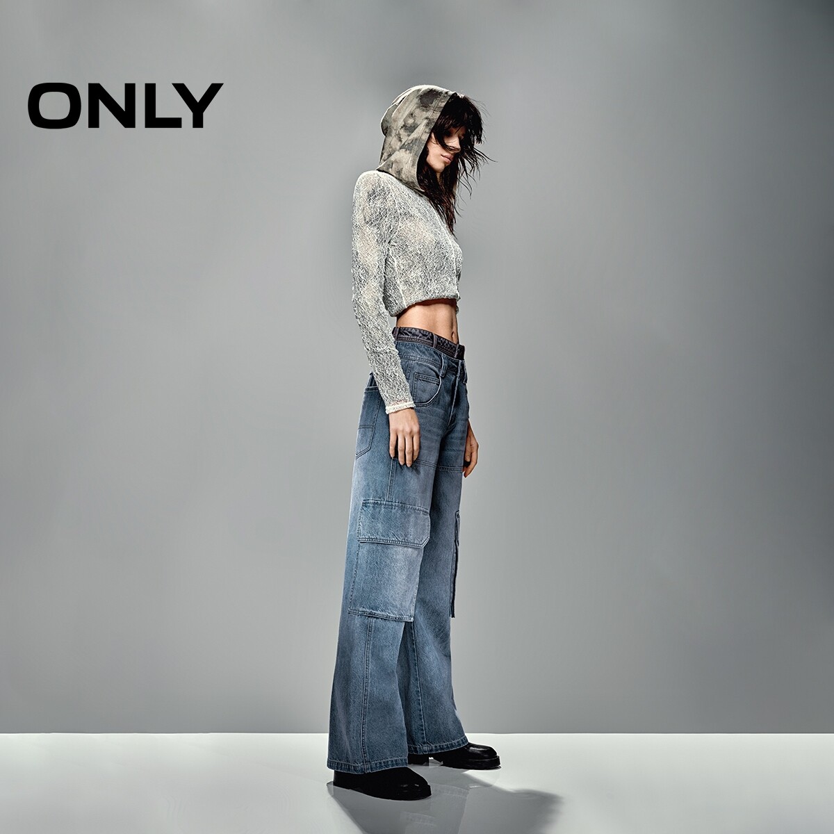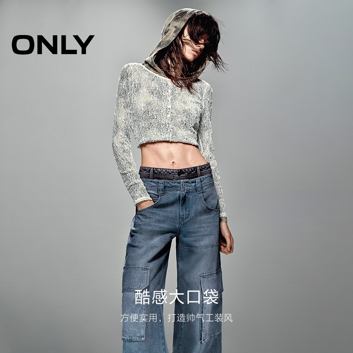 宽松直筒牛仔,酷感工装风格
