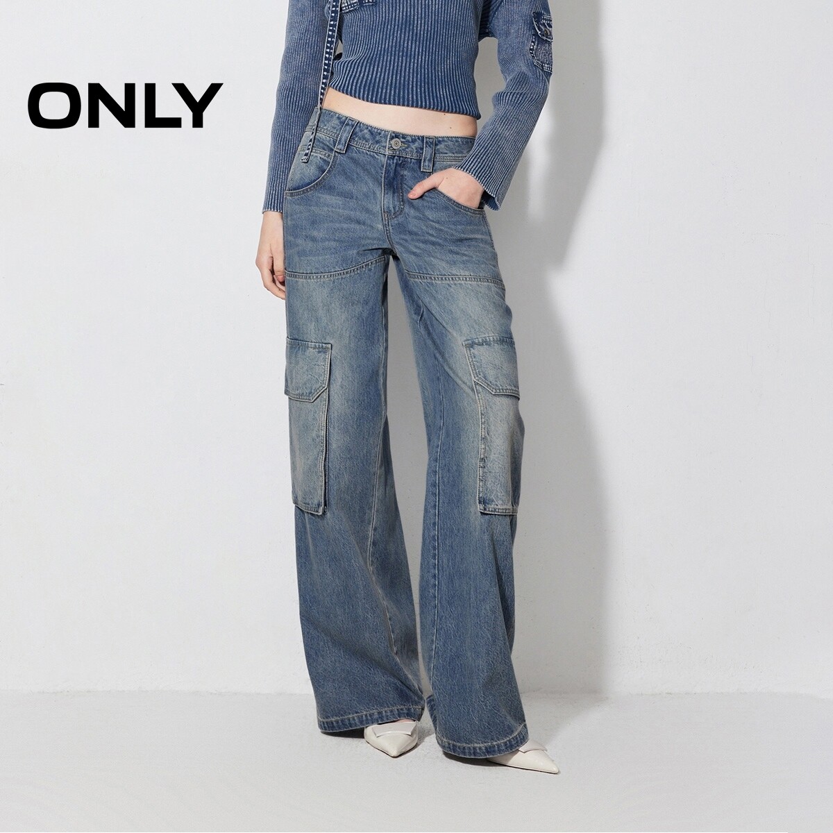 【ONLY奥莱】春季新款时髦酷飒低腰宽松工装直筒裤牛仔裤女