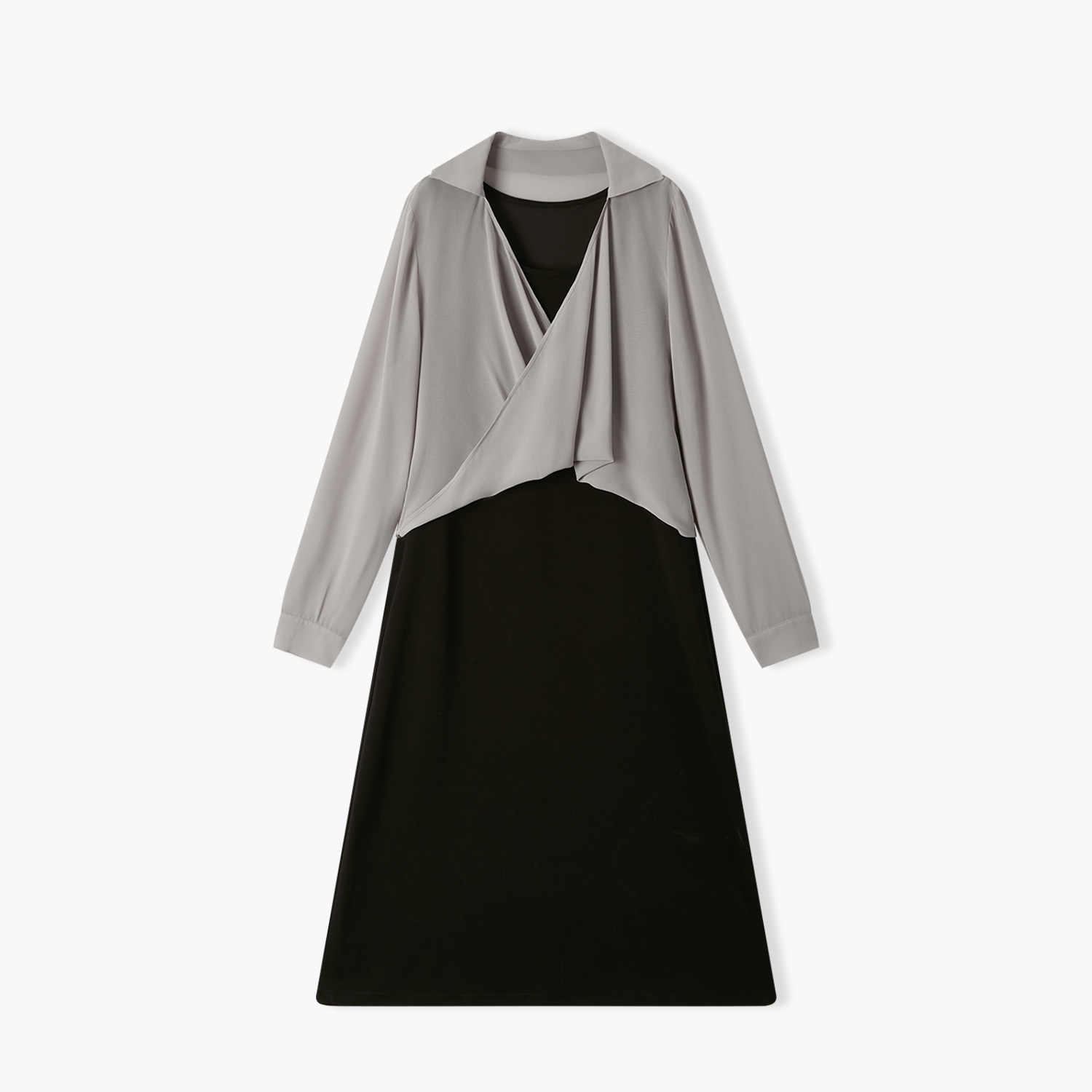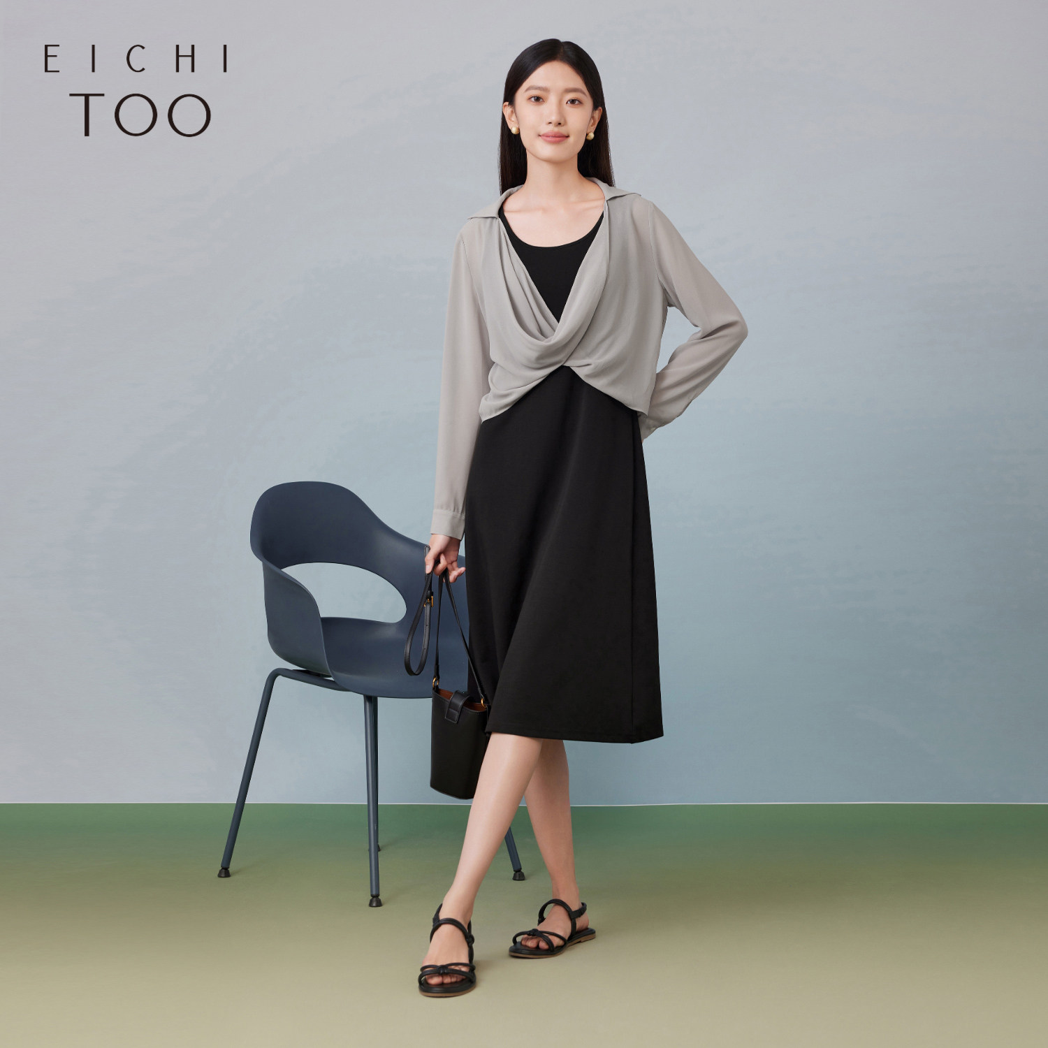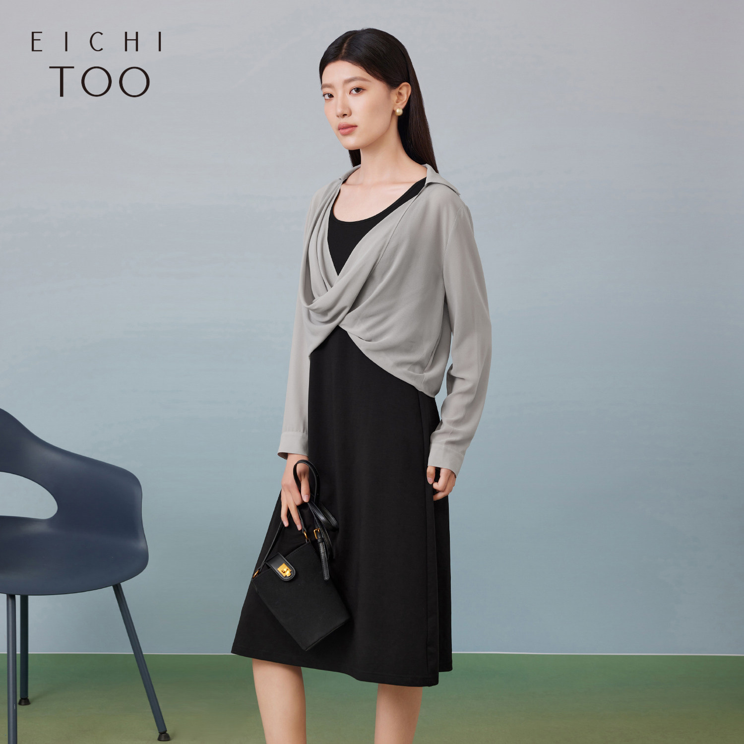 爱居兔夏季新款轻薄罩衫背心小黑裙两件式连衣裙