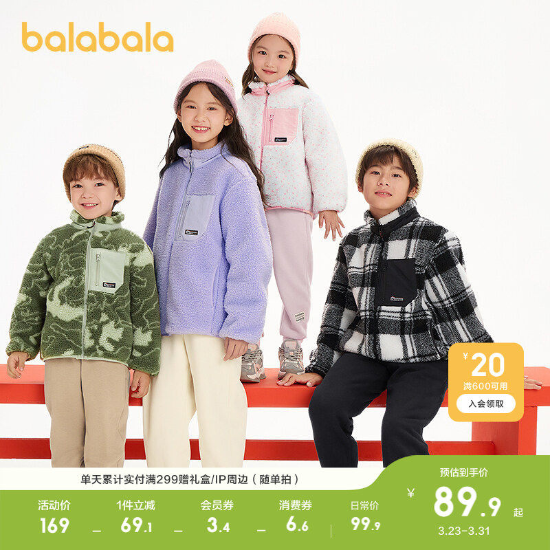 巴拉巴拉童装男童外套儿童秋冬装女童摇粒绒上衣拼接撞色亲子装