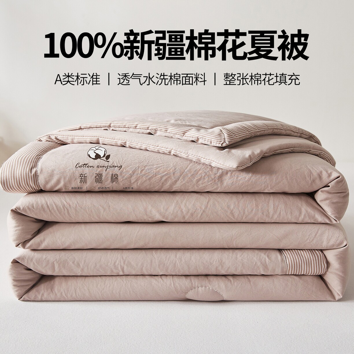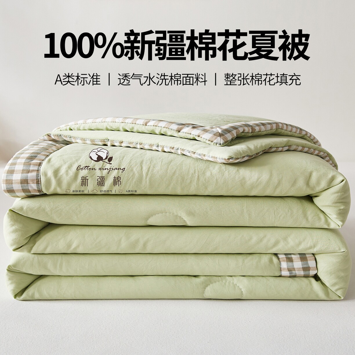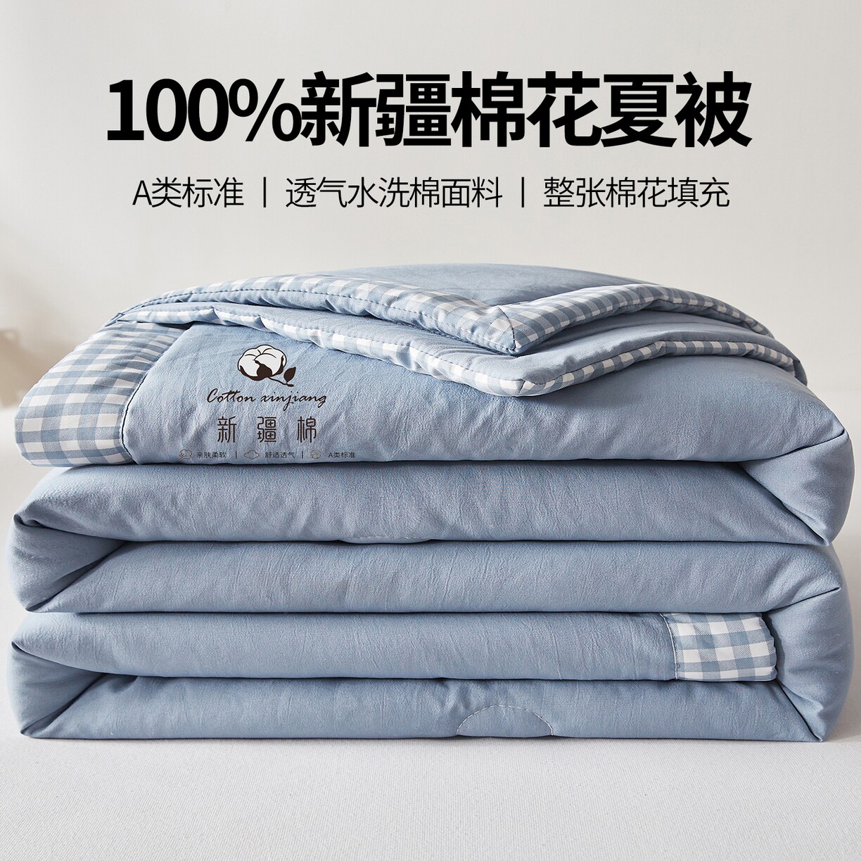A类无印风100%新疆棉花夏被夏季空调被纯棉花夏凉被可机洗薄被子