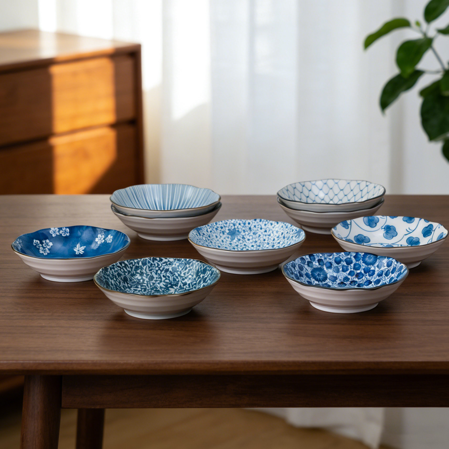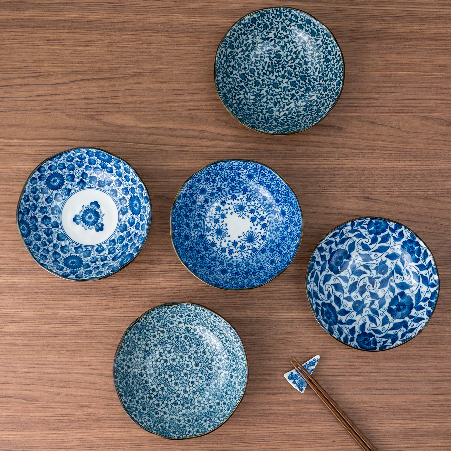 美浓烧日本进口古染蓝绘陶瓷和风餐具釉下彩新款圆形盘子菜盘家用
