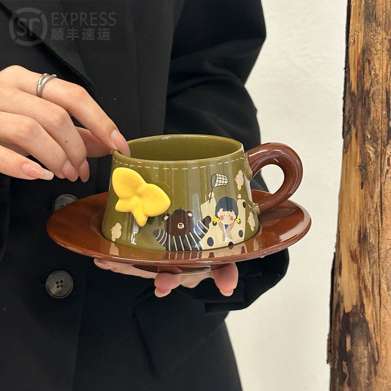 高颜值复古浮雕蝴蝶陶瓷咖啡杯碟套装下午茶拿铁马克杯伴手礼礼盒