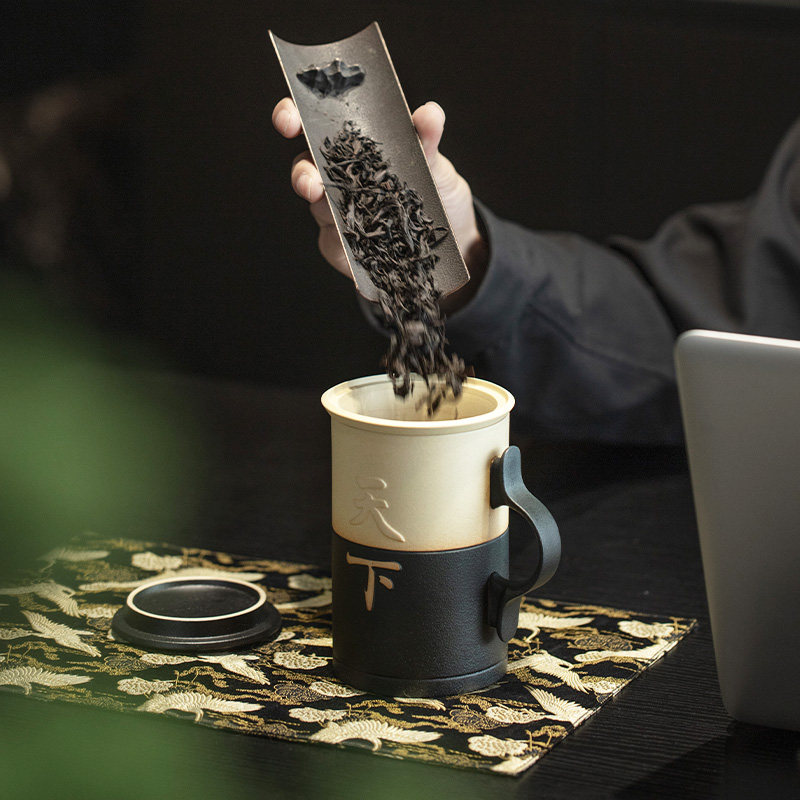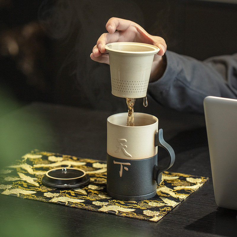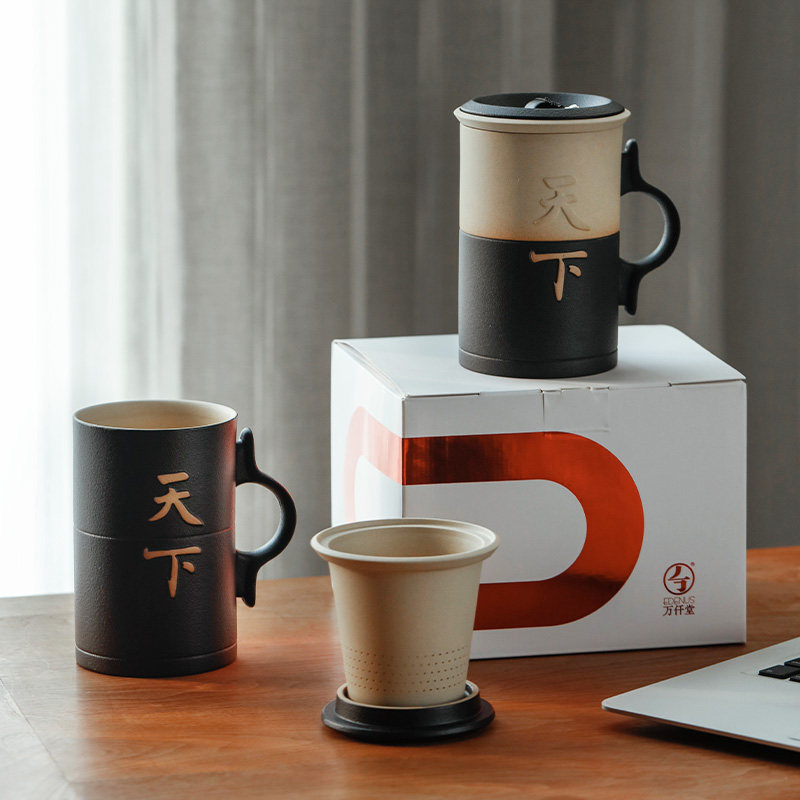 万仟堂马克杯茶水分离泡茶杯个人专用高档老板杯办公杯手握天下