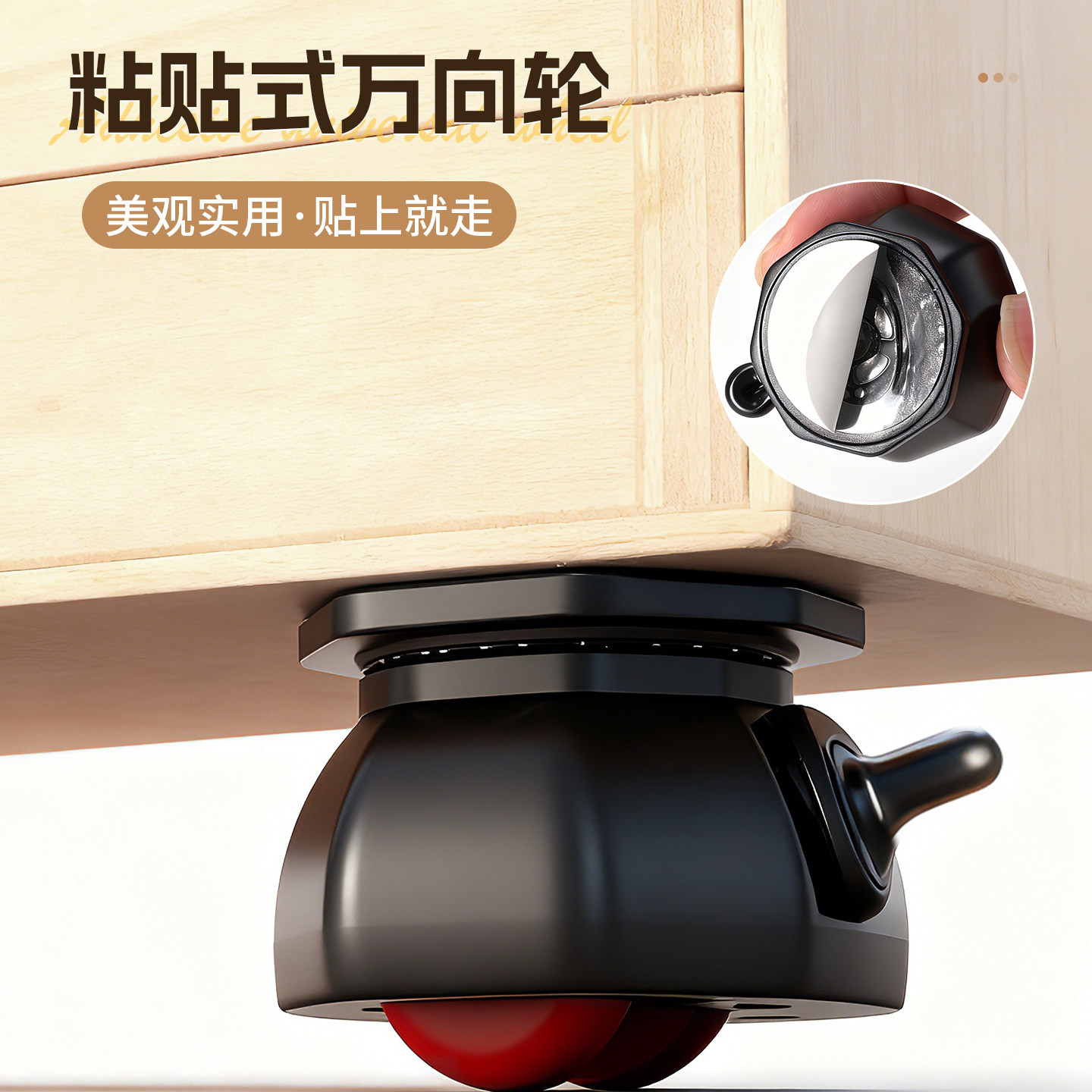 新款粘贴式轮子万向轮桌子茶几移动滑轮静音脚轮家具底座承重滚轮