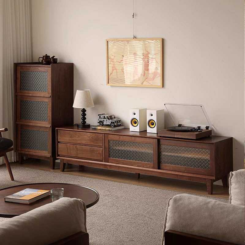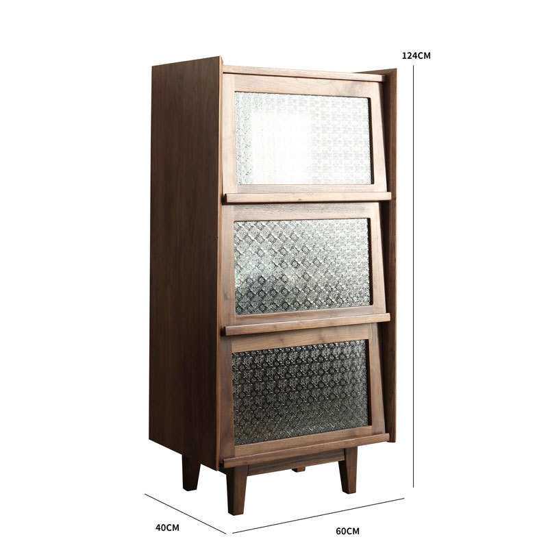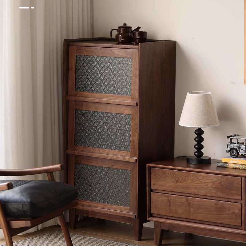 北美黑胡桃木立柜实木边柜小户型复古海棠花玻璃书柜杂志收纳斗柜