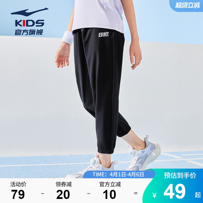 鸿星尔克童装防蚊裤夏季裤子男童运动裤学生女童弹力速干休闲长裤