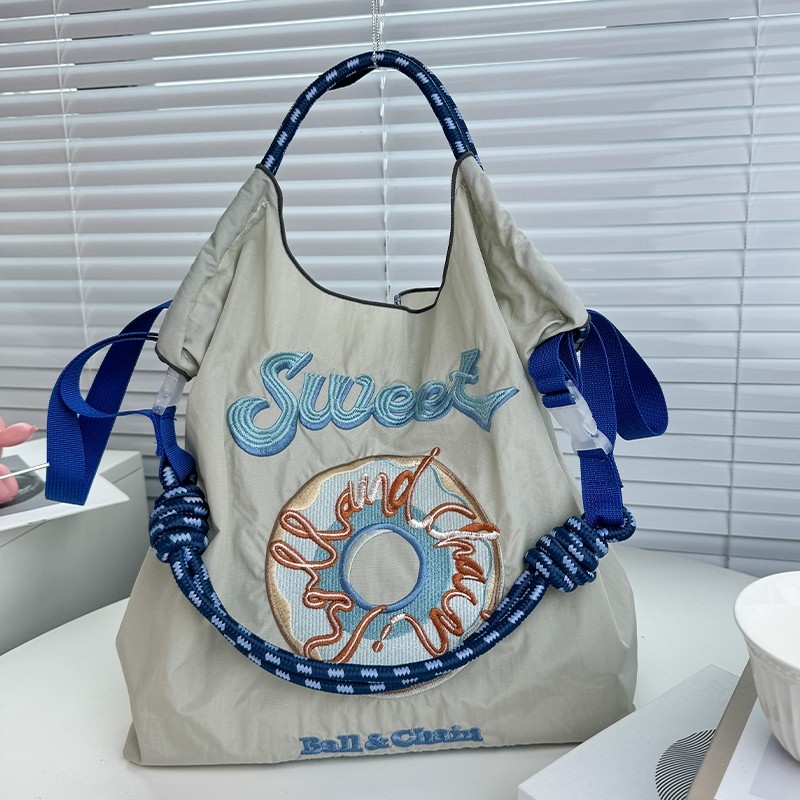 日系高圆圆同款ball chain刺绣甜甜圈环保袋购物袋大容量女帆布包