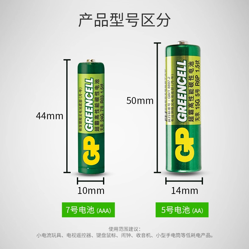 GP超霸5号7号绿超高性能干电池正品碳性五号七号空调电视遥控器体重秤电池鼠标键盘家用专用批发量大从优AAA