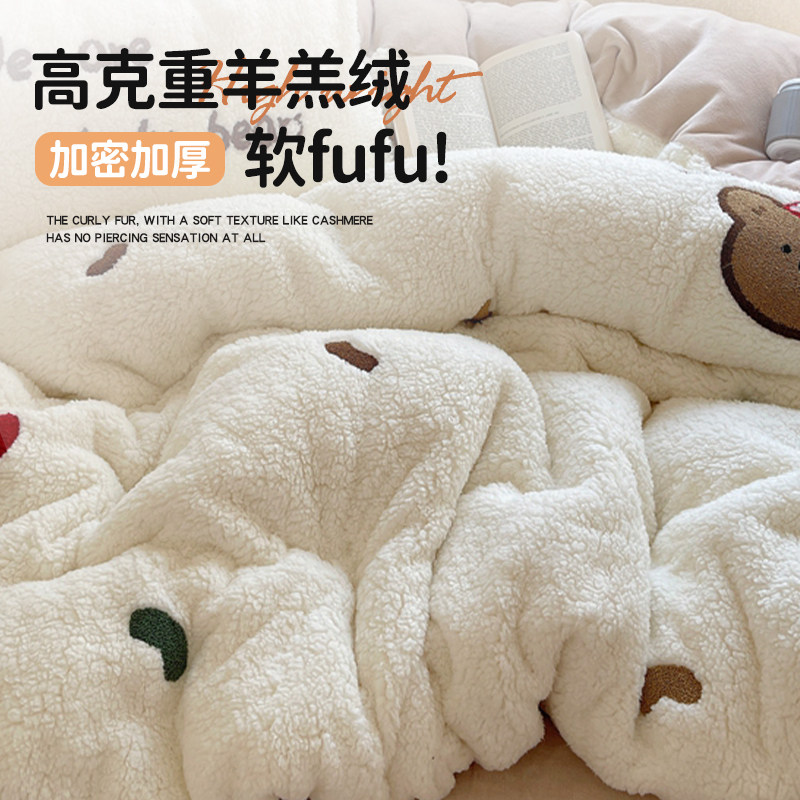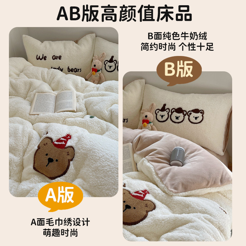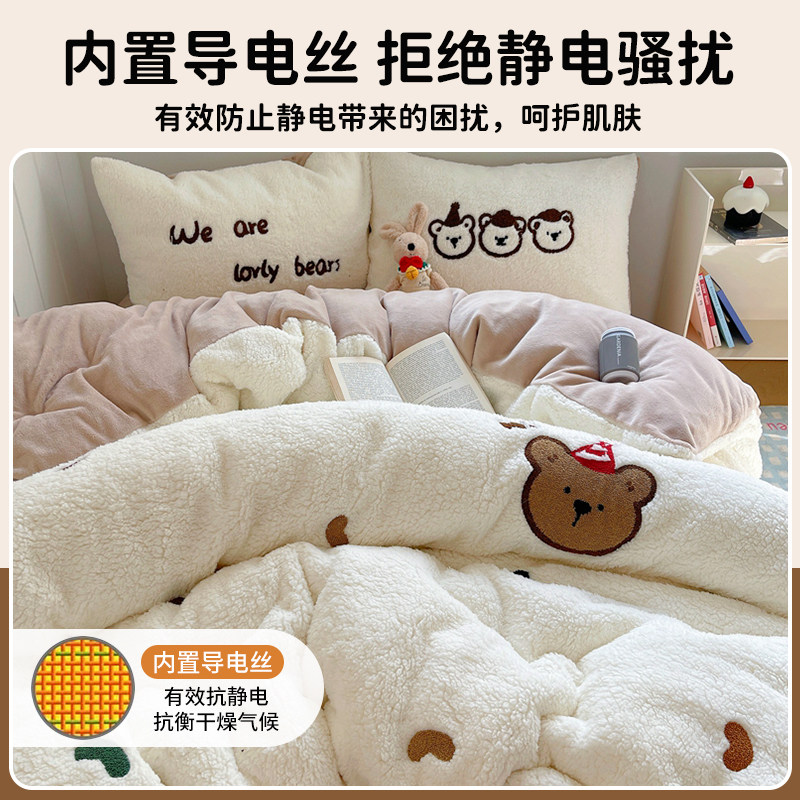 韩版ins小熊牛奶绒四件套冬季加厚保暖床上用品羊羔绒被套床单三4