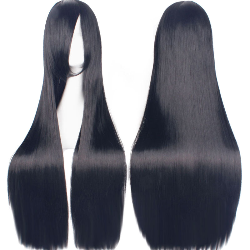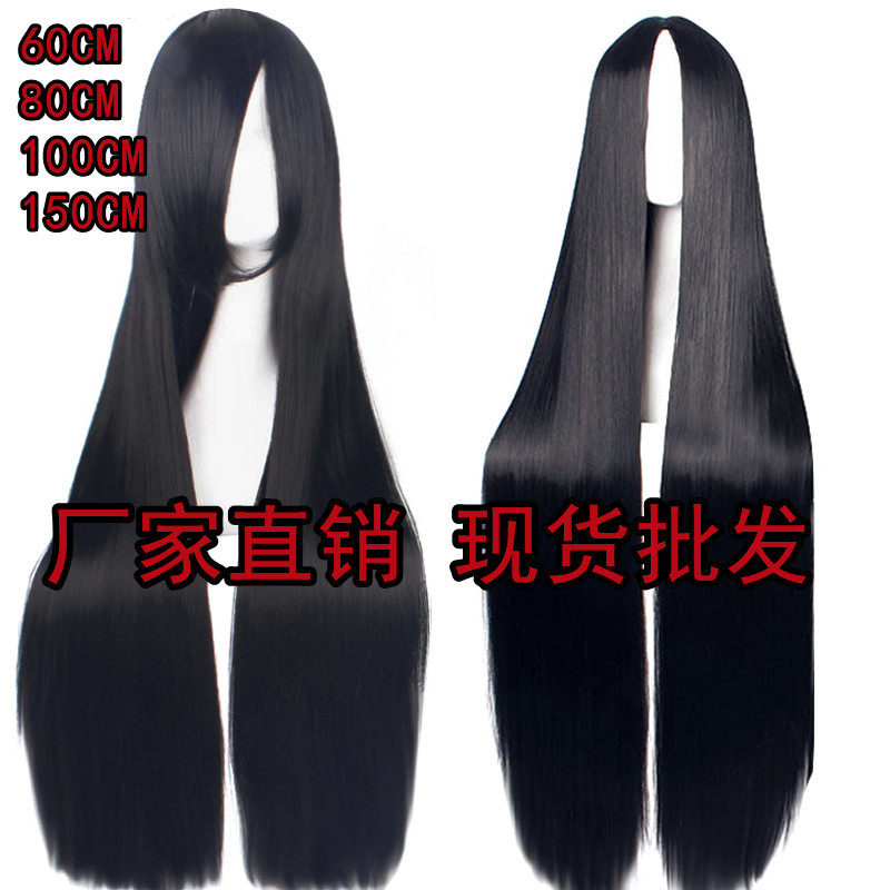 cosplay假发黑长直发100CM动漫短发白色中分古装男女通用轻便