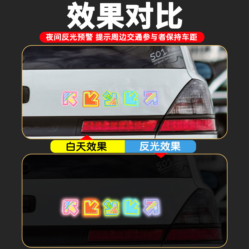 反光贴汽车贴纸保持车距警示创意个性车尾保险杠划痕遮挡装饰车贴