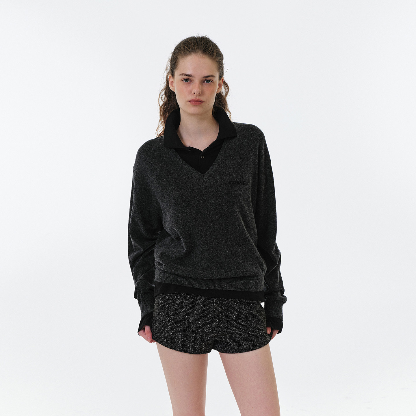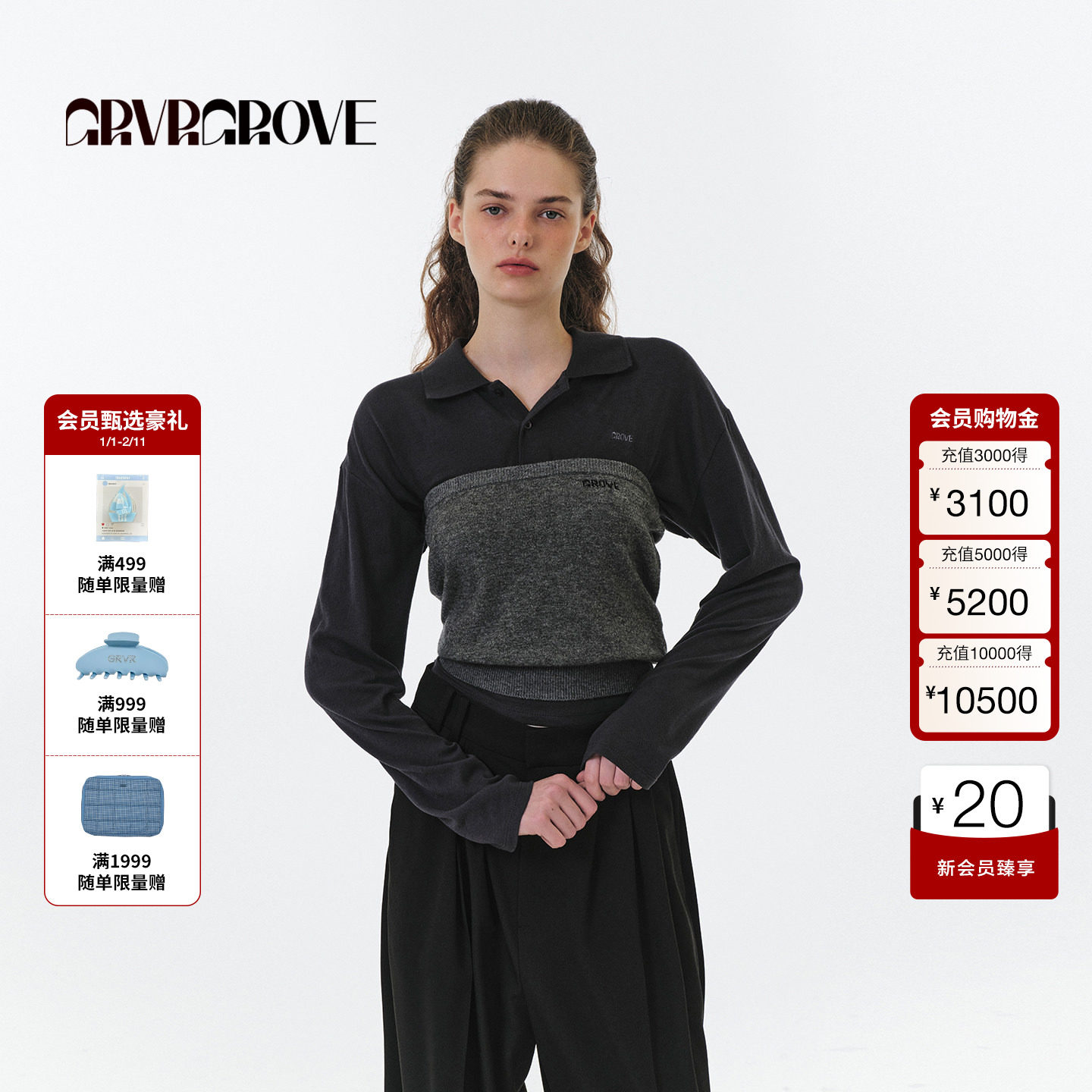 GROVE官方旗舰店 2025FW秋季新款翻领长袖T恤女款 GF5TS06M