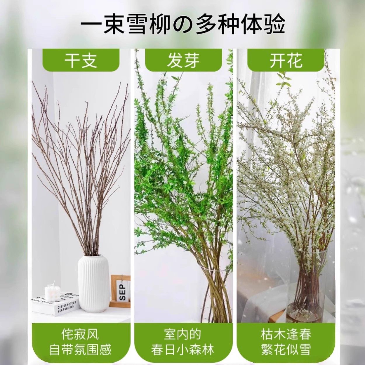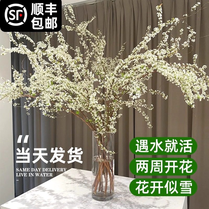 雪柳鲜枝干枝水培植物室内重瓣喷雪花卉盆栽水养鲜花干支遇水开花