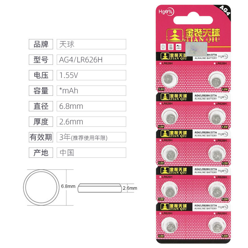 天球AG4纽扣电池通用LR626/377/377A/377S/SR626SW手表电池小颗粒
