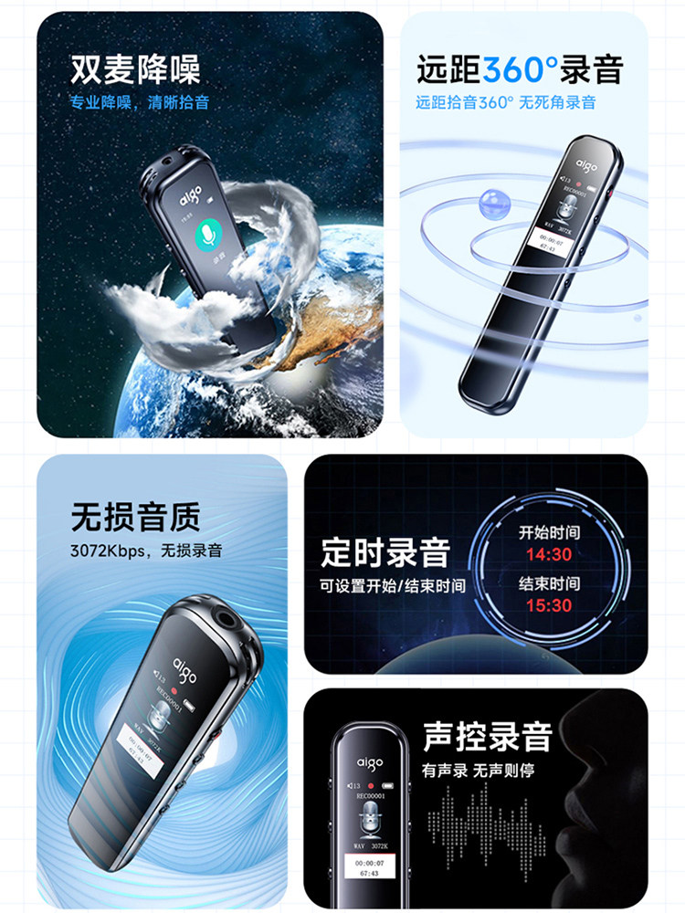爱国者录音笔R3312长续航专业高清降噪律师随身听录音神器转文字