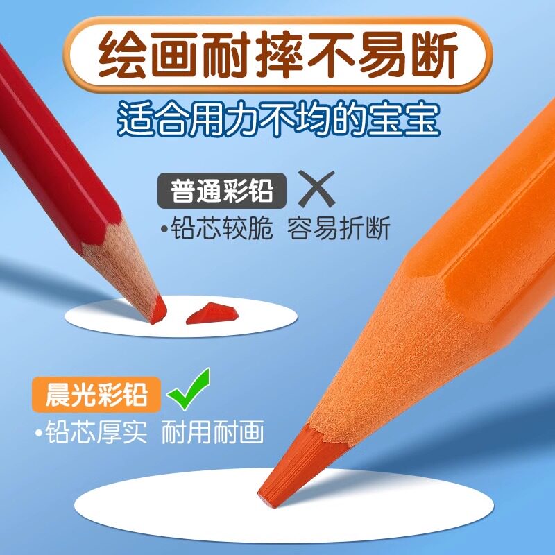 晨光无木净味可擦彩铅学生用绘画专业彩色铅笔24色手绘涂色笔油性儿童小学生画画美术素描彩笔初学者套装