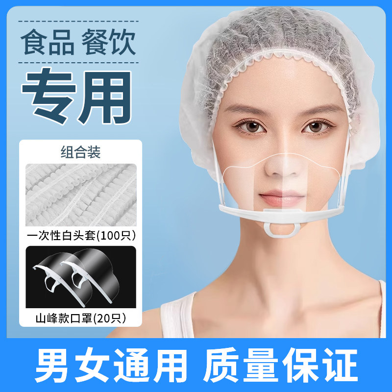 口罩餐饮专用透明厨师酒店服务人员防飞沫口水食品物卫生塑料面罩