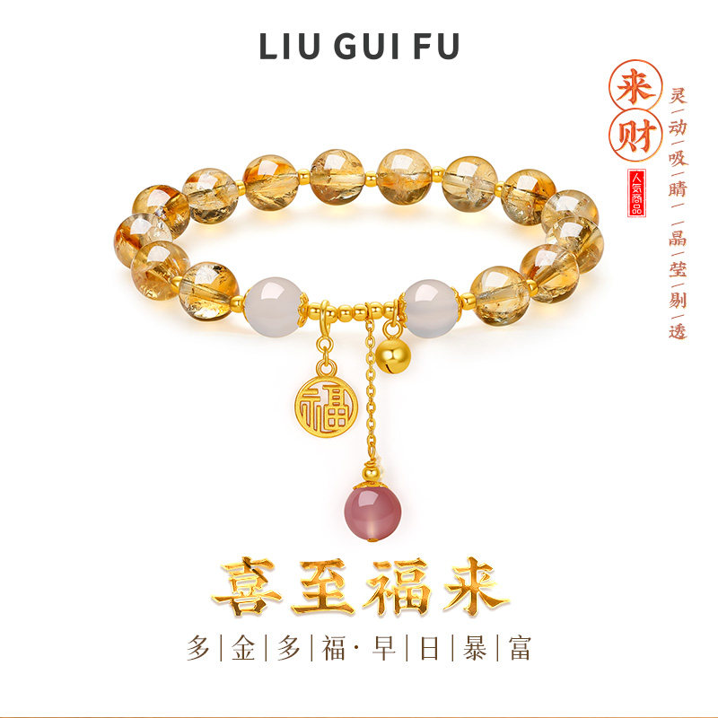 六桂福珠宝喜至福来福牌招财黄水晶新款手串圣诞礼物送女友送闺蜜