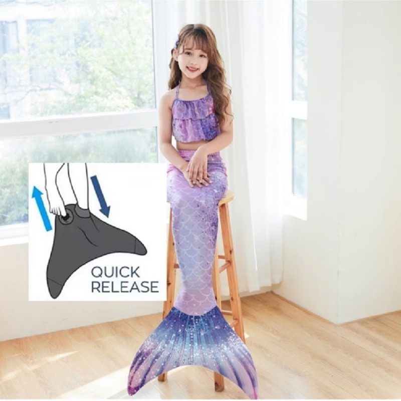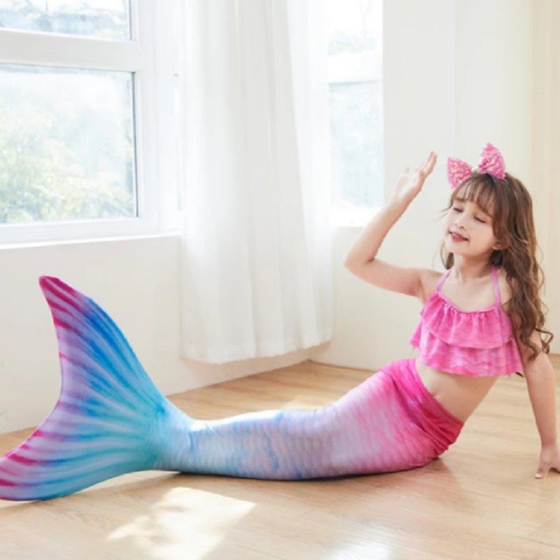 美人鱼儿童泳衣尾巴套装拍照中大女童公主裙分体游泳装旅游脚蹼