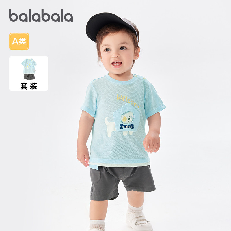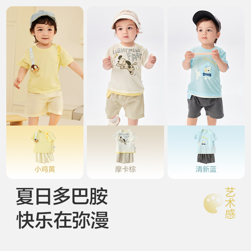 巴拉巴拉宝宝短袖套装夏装婴儿男童衣服两件套舒适透气趣味印花萌