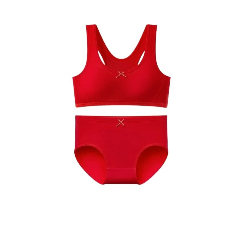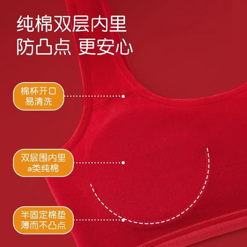 二阶段发育期少女无痕文胸鸿运款女童新年小背心内衣红色套装女儿