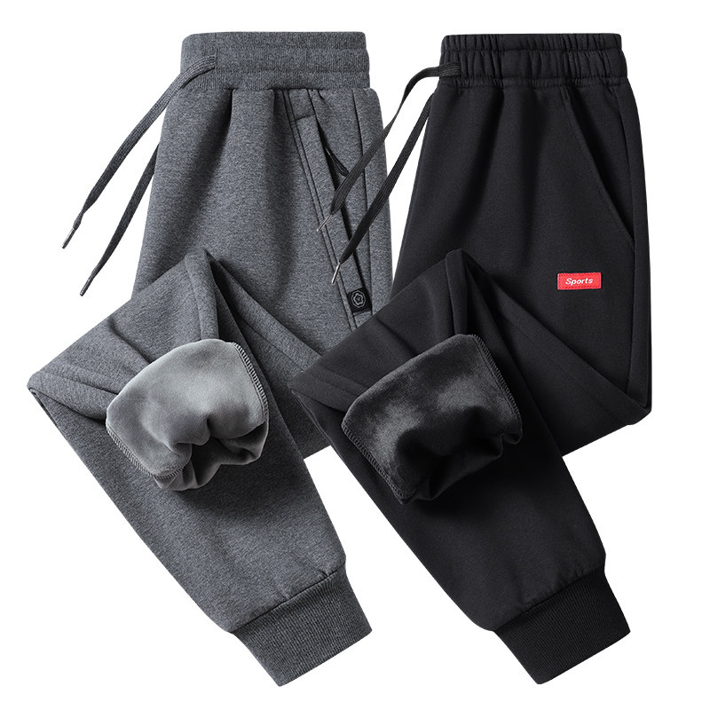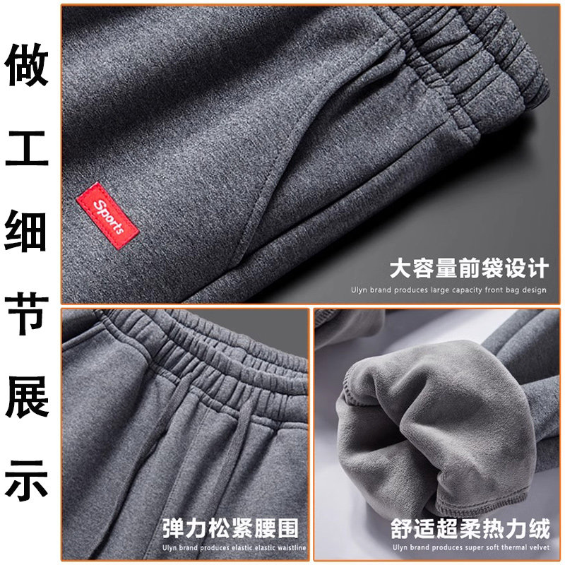 啄木鸟纯棉卫裤子男士冬季加绒加厚保暖休闲长裤男生束脚运动棉裤