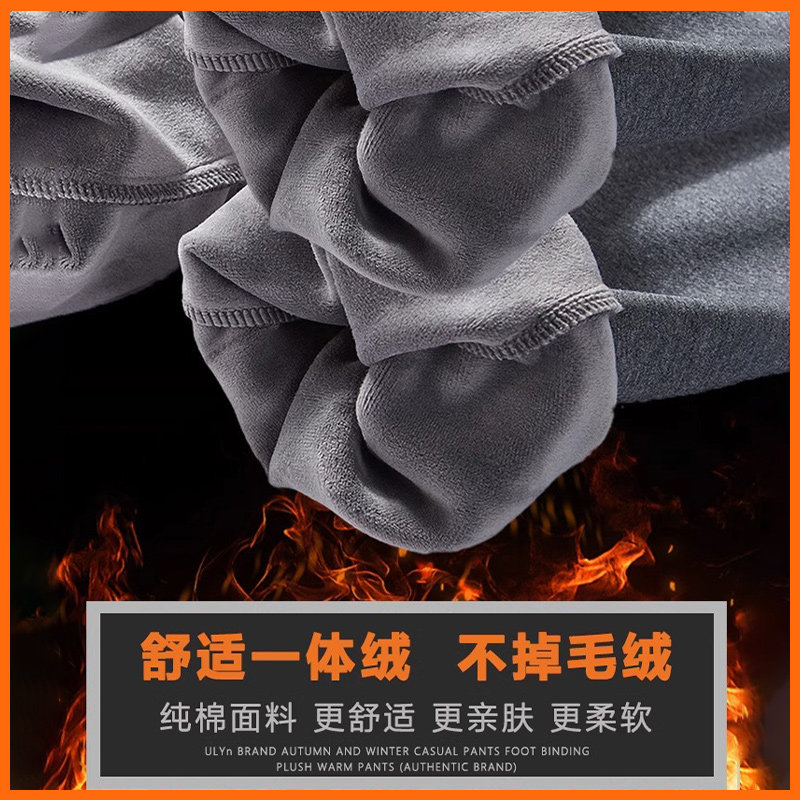 特步加绒卫裤男裤加厚秋冬款保暖缩脚裤直筒休闲裤百搭男子运动裤