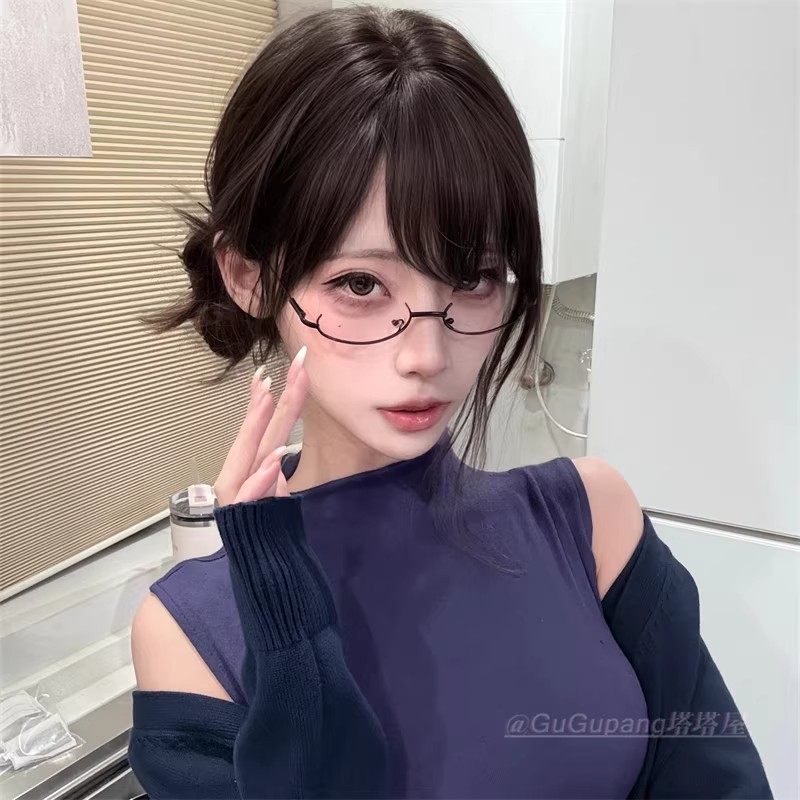 御姐眼镜纯欲天花板下半框眼镜二次元下半框眼镜cos眼镜框无镜片