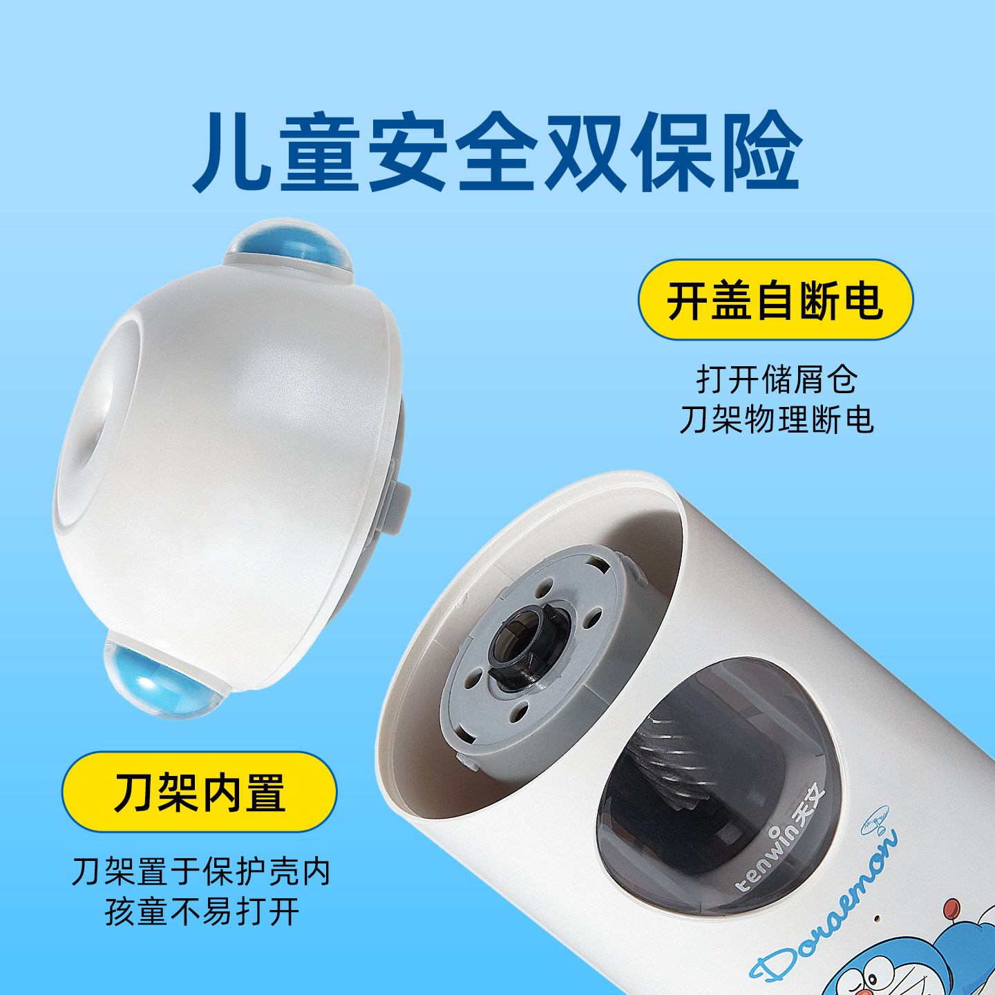 天文哆啦A梦全自动削笔器自动削笔机大口径电动卷笔刀小学生粗三角杆铅笔转笔刀儿童充电削笔刀