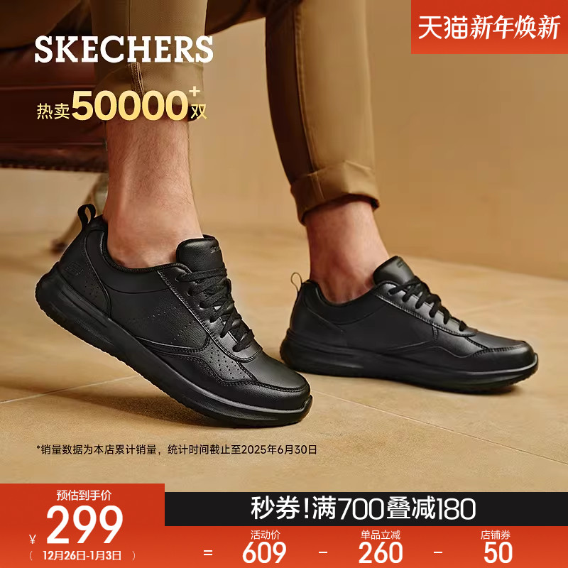 斯凯奇秋冬新款男子舒适休闲皮鞋商务鞋通勤鞋德比鞋软底上班板鞋
