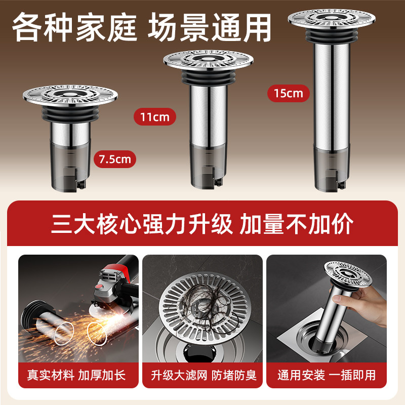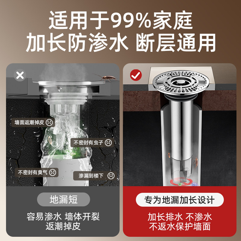 下水道断层加长地漏内芯过滤网防臭延长管不锈钢卫生间防虫通用