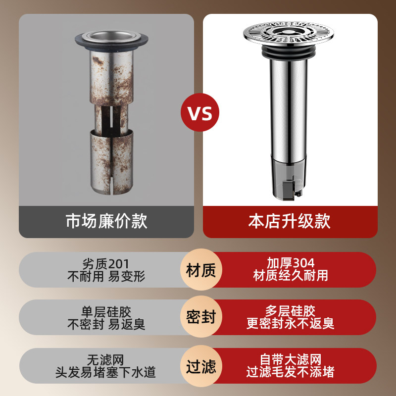 地漏加厚不锈钢防臭五金过滤芯卫生间阳台全铜下水道洗衣机浴室