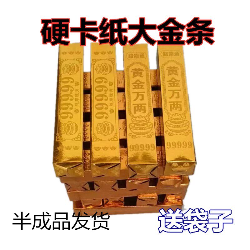 免粘加厚金条银条硬卡纸大号仿真金条半成品全套节日用品整箱祭祀