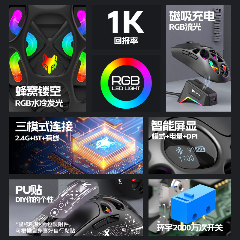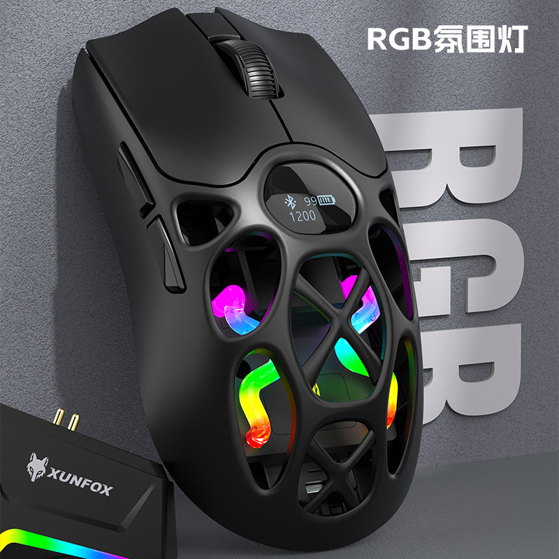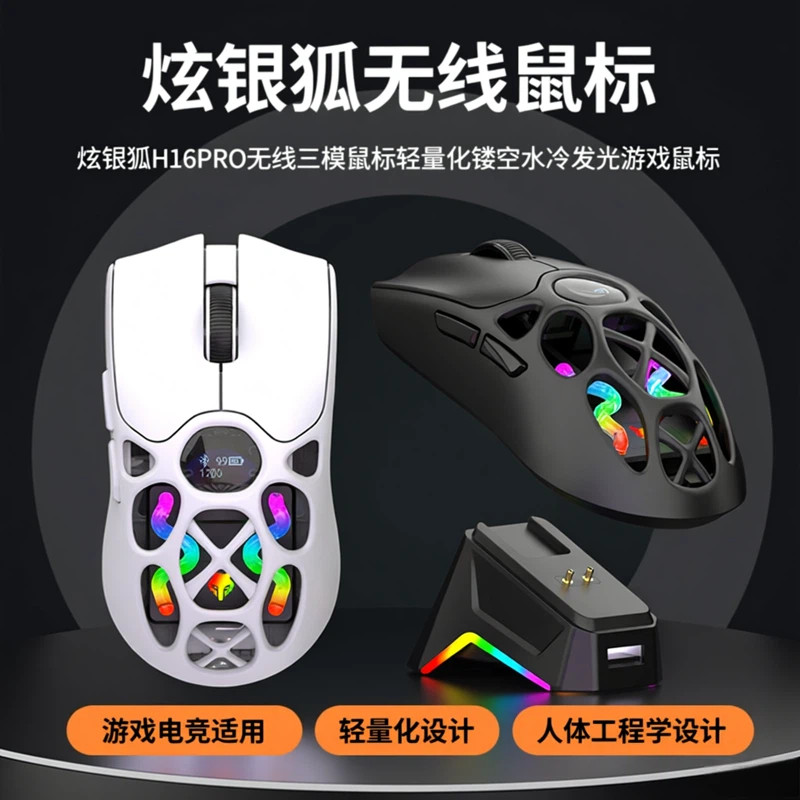 炫银狐H16PRO无线三模鼠标轻量化镂空水冷发光游戏鼠标CF吃鸡 LOL