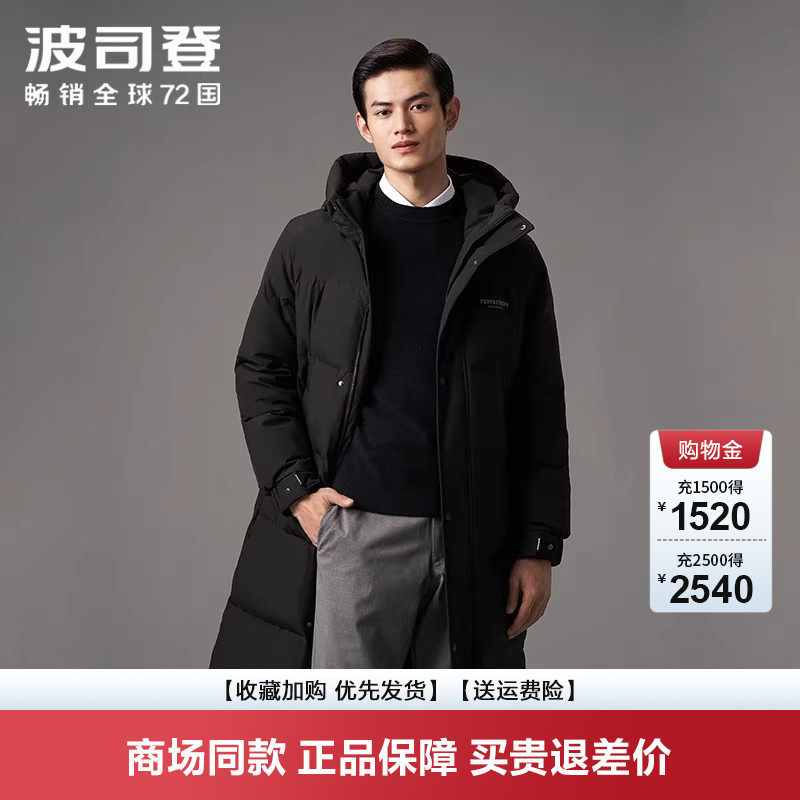 波司登冬季新品羽绒服男长款过膝商场同款商务休闲连帽加厚冬外套