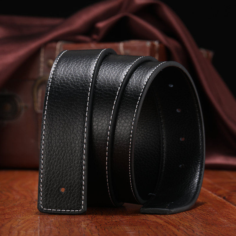 爱马男仕H扣真皮带身 牛皮裤腰带平滑扣打孔皮带男女士彩色格子荔