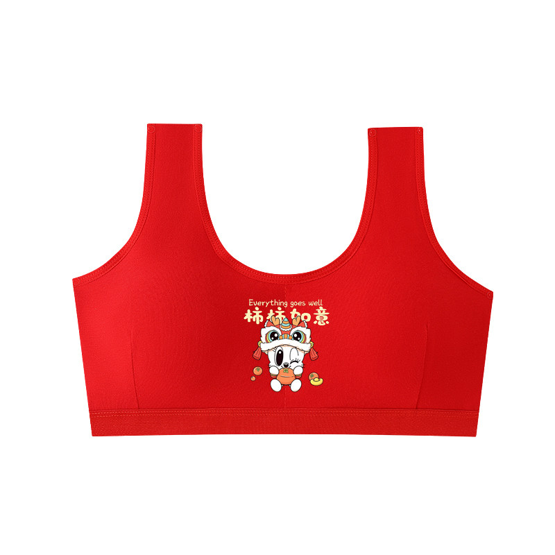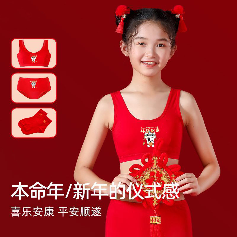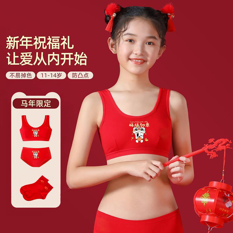女童本命年红内衣内裤套装纯棉背心12岁女孩马年抹胸13发育期新年