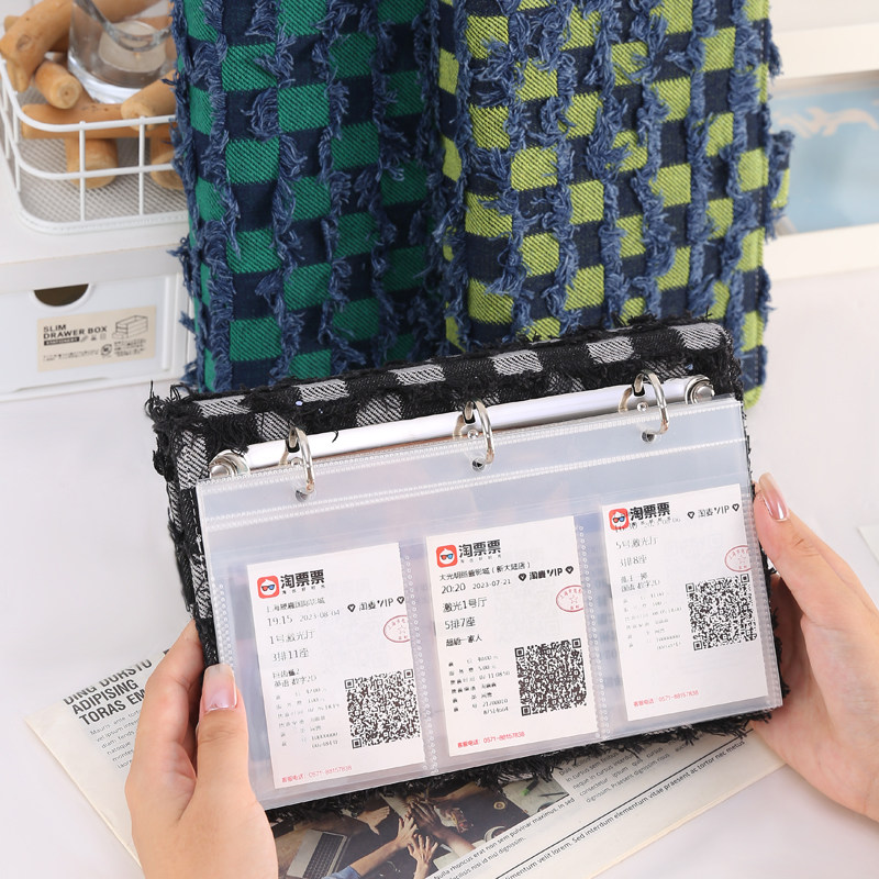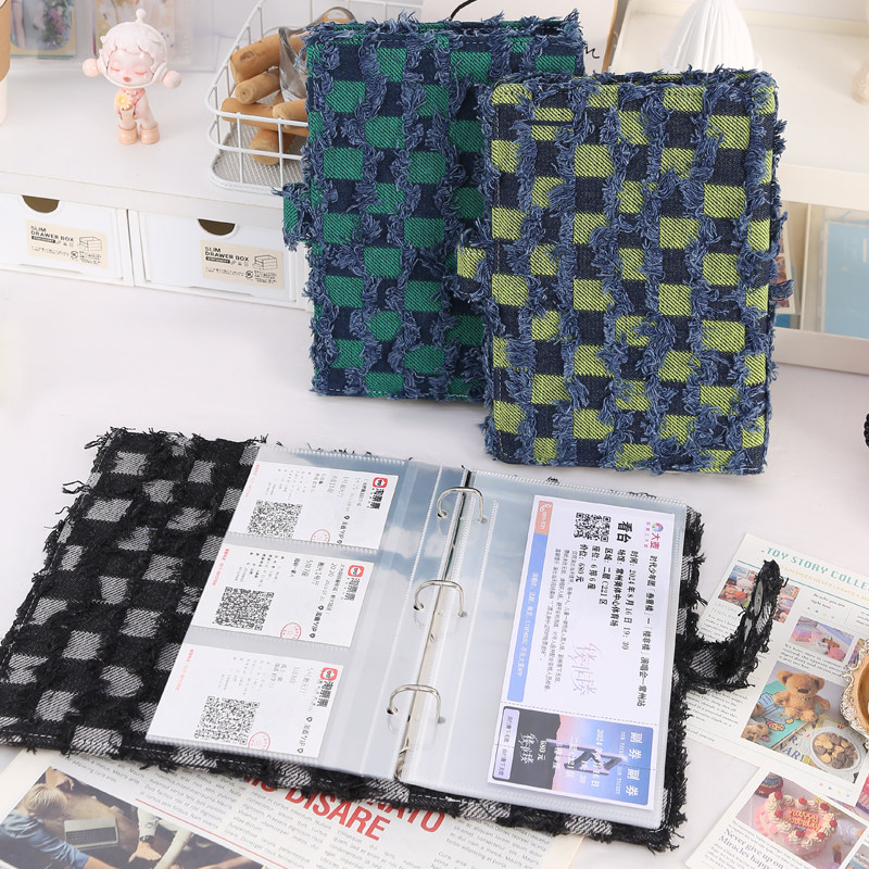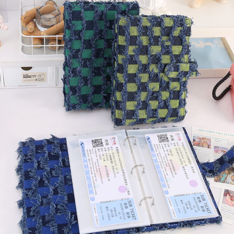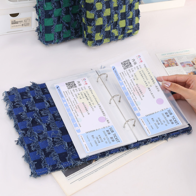 棋盘格牛仔门票收藏册票据收集册搭扣票夹收纳本机票高铁票镭射电影票根收纳册卡册书签周边收纳册车票收纳夹