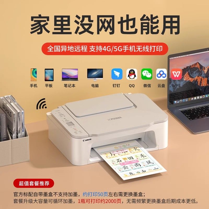 佳能TS3480A4打印机家用小型可连手机彩色喷墨照片多功能复印扫描一体机学生家庭办公专用无线3680自动双面