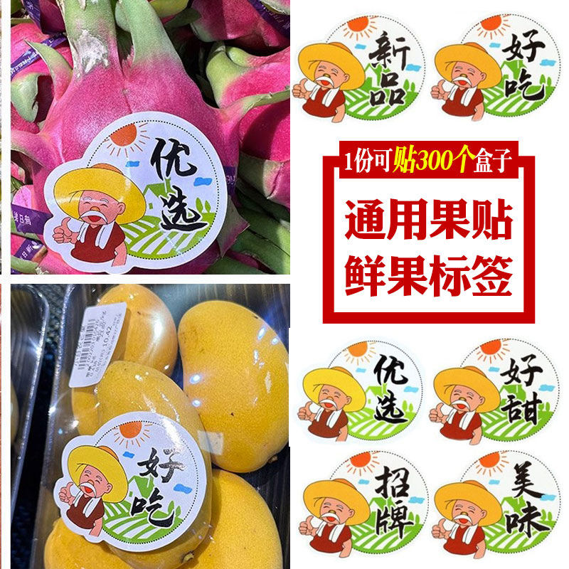 水果贴纸不干胶标签菠萝蜜通用精品鲜果榴莲草莓包装盒樱桃不粘胶