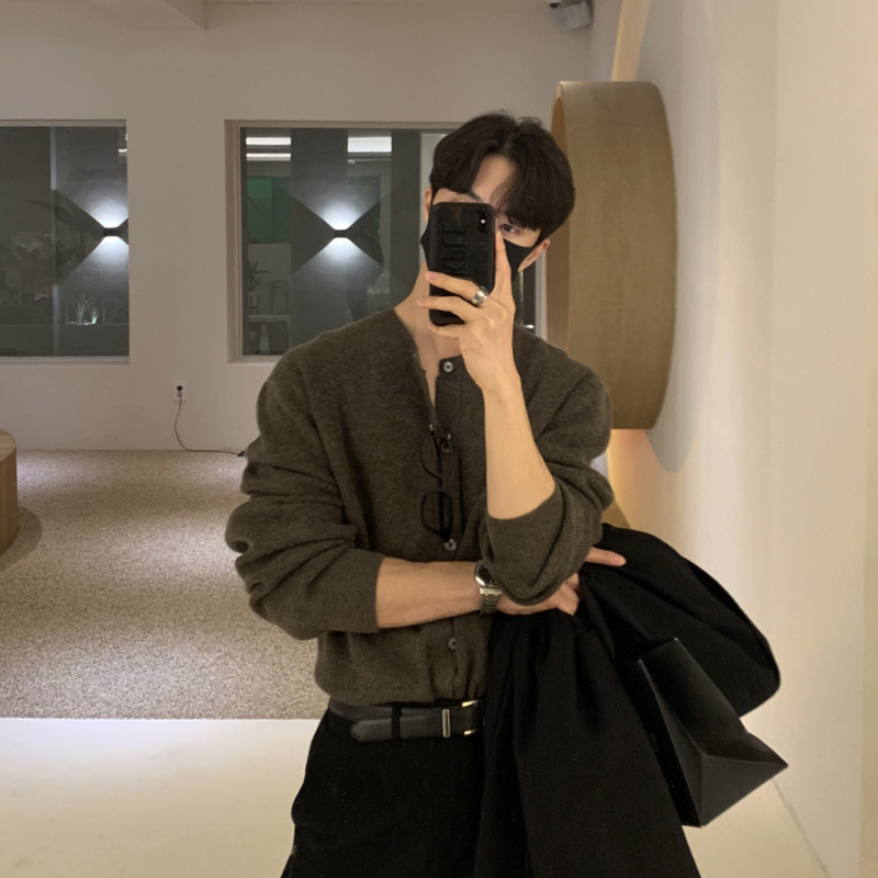 碧舍薄款针织开衫外套韩版潮流ins圆领毛衣男休闲宽松高级感上衣