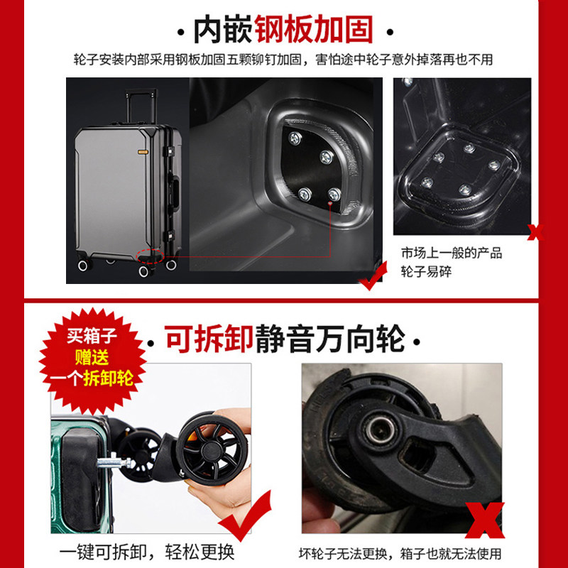 旅行箱行李箱铝框20拉杆箱万向轮24女男学生26登机密码皮箱子28寸
