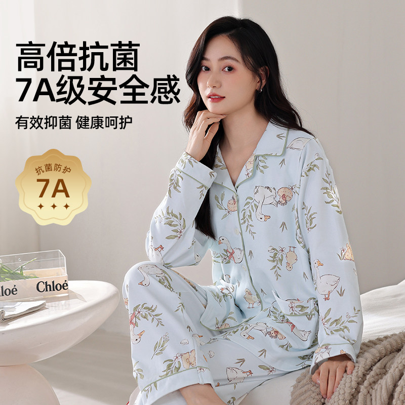 十月结晶兜兜鸭纯全棉吸汗月子服哺乳睡衣7A抗菌12月家居服女冬季
