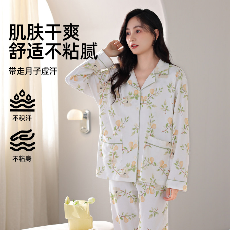 空气棉月子服秋冬季纯棉产后12月份全棉吸汗喂奶产妇哺乳孕妇睡衣