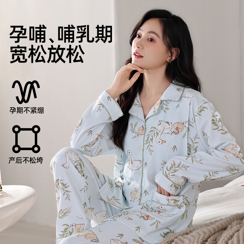 月子服纯棉春秋冬季产后12月份孕妇睡衣可外穿喂奶产妇哺乳家居服