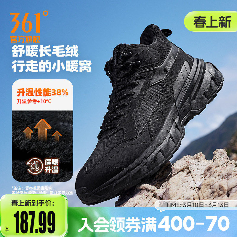 361行山男户外运动鞋冬季新款高帮加绒保暖大棉鞋皮面防水登山鞋