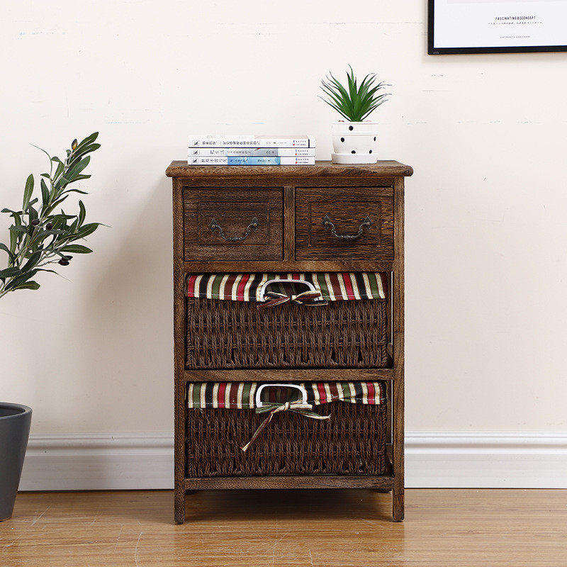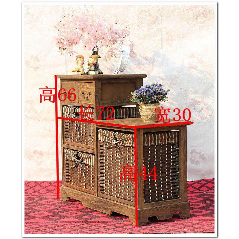 5dbj卧室美式田园实木床头柜藤编收纳柜批发复古柜子抽屉五斗柜小