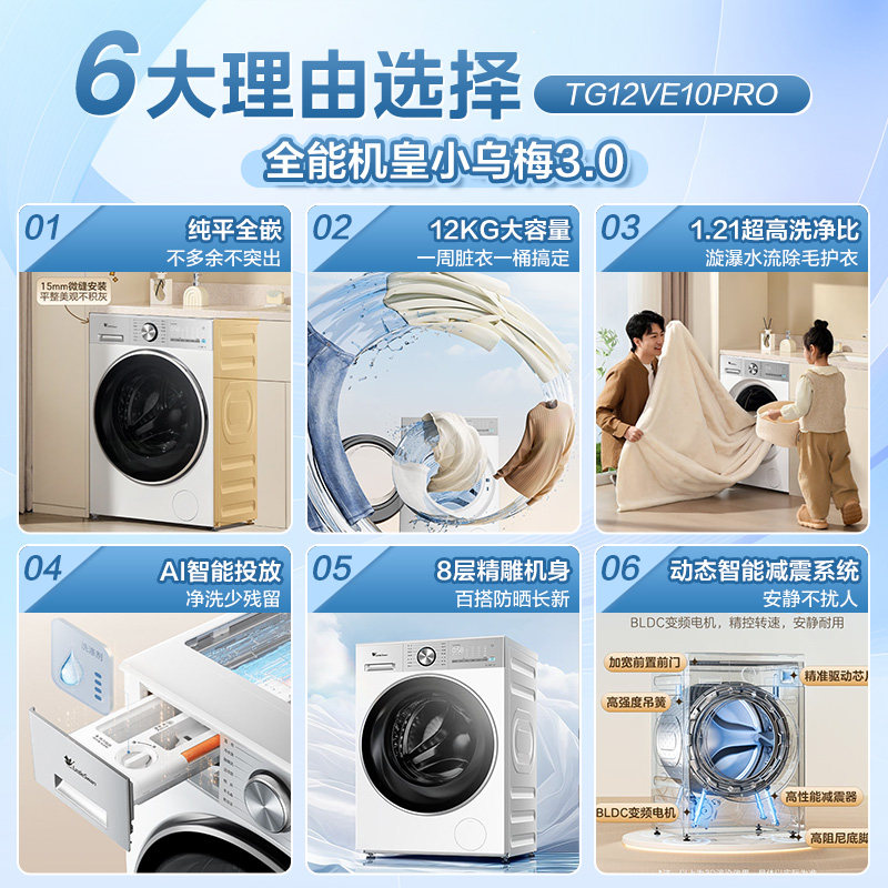 【纯平全嵌】小天鹅小乌梅3.0家用全自动滚筒洗衣机洗烘一体机E10