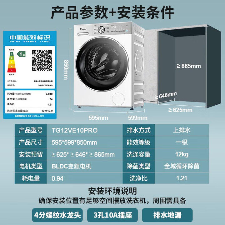 [水魔方]小天鹅洗衣机家用10KG大容量白色